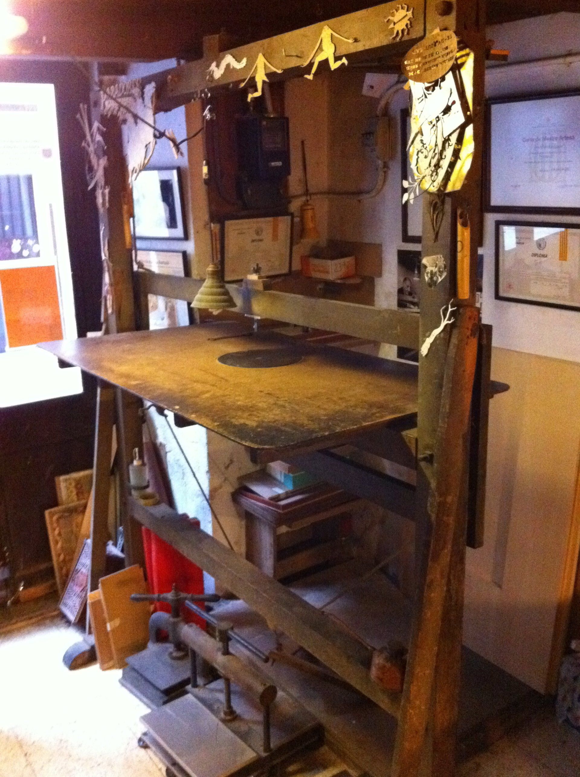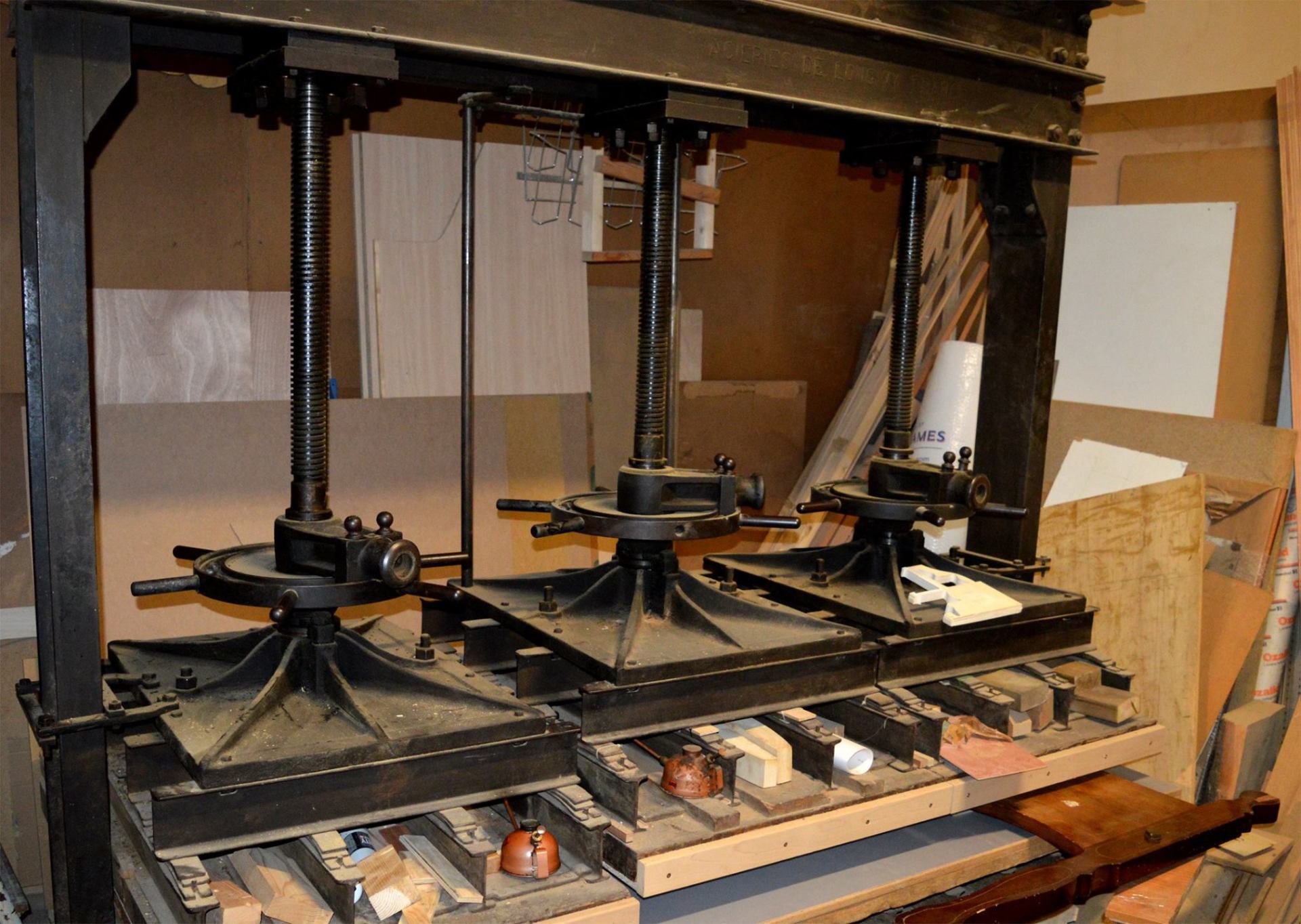 El uso de la prensa manual también se generalizó para la aplicación de la marquetería sobre las superficies.